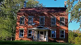 Coffin's Grove Stagecoach House, also known as the Henry Baker House, was a historic building located west of Manchester, Iowa, United States. Coffin's Grove was named for Clement Coffin who settled in the area in 1840. His son-in-law Henry Baker joined him the following year. The house was built in 1855 to accommodate the increase in travelers passing through the area. It served as a hotel, post office and the second floor was used for community functions like dances. The two-story Colonial style was unusual for a structure this far west.[2] It is typically found in Ohio. The house featured a foundation of limestone quarried on the property and brick that was kilned here. Across the road from where the house was located are the remnants of barns built in 1849. They were the first frame barns in the Delaware County.[2] The house was listed on the National Register of Historic Places in 1975.[1]