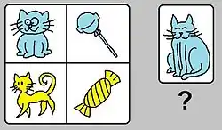 In the Multiple Classification Card Sorting Task, children are shown cards and asked to sort them based on two different dimensions (e.g. by color, such as yellow and blue, and object type, such as animals and food) simultaneously into four piles within a matrix (e.g. yellow animals, yellow foods, blue animals and blue foods). This task appears to be more difficult as research has shown that seven-year-old children were incapable of sorting cards based on the two dimensions simultaneously. These children focused on the two dimensions separately, whereas at the age of eleven, children were capable of sorting cards based on these two dimensions simultaneously. This demonstrates an increase in cognitive flexibility between the ages of seven and eleven.[11][15]