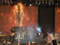 The band's style is described as progressive rock by Equal Vision,[93] Spin,[94] and AllMusic.[95][96][97][98][99] Songs such as "Blood Red Summer" and "Three Evils (Embodied in Love and Shadow)" have been noted in many reviews of the band also to contain several elements of pop, as exemplified by one review by Sputnikmusic, which says "Coheed and Cambria manage to bring new life to a dying genre, and mix up the standard pop-punk scheme with creative and original riffs."[100] The band has also been described as alternative rock,[101][102] new prog,[103][104] progressive metal,[105][106][107] emo,[108][109] post-hardcore,[110] and alternative metal.[111][112]
