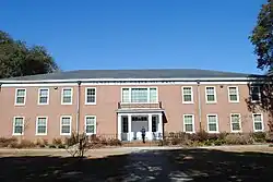 The 15-acre (6.1 ha) main campus contains mostly Georgian-style brick buildings, some of which (such as Davidson Hall, home to the college's round table classrooms) are listed on the National Register of Historic Places. The Alumni House (Drengaelen), The President's House, The Dean's and President's Offices (David and May Coker House), and The Registrar's Offices (Lawton-Wilson House) are all located in old mansions along the northern edge of campus.