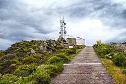 A pylon supporting telecommunications antennas is installed about twenty meters above the pass.