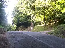 An oratory dedicated to Notre-Dame de Bon Secours stands on the roadside at the pass. It is built of ashlar and comprises a parallelepiped-shaped pedestal topped by a cornice on which is placed the grilled niche housing the statue of Notre-Dame de Bon Secours, itself topped by a small iron cross. The whole is preceded by three steps.[43]