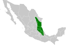 The bronze-winged woodpecker is found in eastern Mexico between the states of Tamaulipas and Veracruz.[9] It inhabits subtropical dry forest, secondary forest, and plantations. In elevation it ranges from sea level to 2,100 m (6,900 ft)[1]