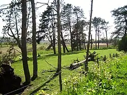 Little remains at Colbren of the station or the junction, although surviving conifers indicate the alignment of the track of the former railway.
