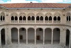 The Patio Grande (Large courtyard) was the access to the most important stays of the set. It considered a Hispanic-Flemish (Isabelline) gem, is set in relation to Juan Guas for its similarities to Palacio del Infantado in Guadalajara, although have also located abundant motifs that Bartolomé Solórzano, an active artist at that time in the area, used in the Cathedral of Palencia, seat of the Friar Alonso's bishopric.