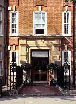 Princess Mestchersky, a leader of White Russian emigres from the Russian Revolution, lived at Coleherne Court following her escape from Russia.[1] The actor Stewart Granger was born in Flat 60 in May 1913.[1] In the 1950s Coleherne Court was the residence of the novelist Brigid Brophy. The actor Corin Redgrave lived at Flat 116 and held meetings of the Workers Revolutionary Party there.[2] Other residents include the authors Stephen Vizinczey in the early 1970s and Sir Charles Petrie, 3rd Baronet in the 1960s.[3][4]