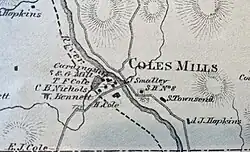 Coles Mills was a grist mill and small hamlet on the West Branch of the Croton River in Kent, New York. One of the first settlements in the Southern Precinct of Dutchess County, now Putnam County, in the state of New York, it features prominently on the 19th Century maps of the area including the 1854 R. F. O’Connor Map of Putnam County,[1] the 1867 F.W. Beers Map,[2] and the United States Geological Survey map from 1892.[3] The mill and surrounding area was purchased by the New York City water supply system and submerged during the construction of West Branch Reservoir in the 1890s.