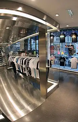Colette was a French high fashion, streetwear, and accessory retailer.[1] The three floor 8,000 square feet (740 m2) concept store[2] was located in Paris and contained an exhibition space, bookshop, and a "water bar" serving more than 100 brands of bottled water. It closed permanently in December 2017.[3] Colette's logo was two blue dots.[4]