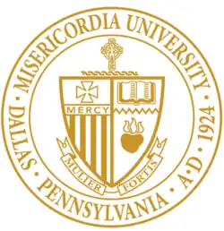 Misericordia University is a private Catholic university in the Dallas, Pennsylvania area, United States.[1] It was founded by the Religious Sisters of Mercy in 1924 as College Misericordia; in 2007 it became a university and changed its name. The university offers bachelor's, master's and doctoral degrees as well as post-master's and post-bachelor's certificates.[1] The university operates a campus in Pittsburgh, Pennsylvania, where it offers an accelerated Bachelor of Science in Nursing program in partnership with Orbis Education.[6]