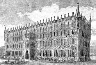 The school building was conceived to replace the structure that until then the nuns had lived in at Carrer de Sant Elies, 4, of the then-independent municipality of Sant Gervasi de Cassoles. The house was occupied in 1886 and functioned as a boarding school, novitiate and provincial headquarters for rent. The inadequacy of the premises was soon seen and the current land was bought, then easily accessible to be near the railway from Sarrià to Barcelona, then an independent municipality and far from Barcelona.[4]
