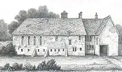 The college's main building in Salisbury was still standing in 1826, when it was sketched by Robert Benson, Deputy Recorder of Salisbury, and his work was engraved for Peter Hall's Picturesque Memorials of Salisbury (1834), in which Hall claims that by 1834 it had been demolished and a row of houses built on the land. These are now called De Vaux Place.[3][12] Despite this, number 8, St Nicholas Road, has medieval fabric which appears to survive from the college. It is a Grade II* listed building, and the listing calls it a "refronting of much earlier building" and adds "With No 9 De Vaux Place and No 6 St Nicholas's Road the building was originally part of the College de Valle, founded by Bishop Bridport in 1261 as a theological college which continued there until the Dissolution."[13] The row of windows shown in the engraving of 1834 is gone, but there are medieval and 17th-century window features, and the roof has smoke-blackened rafters believed to date from the 13th century. A study for the Royal Commission on the Historical Monuments of England says "Hall's assertion that 'the whole edifice is now demolished' is inaccurate."[14]