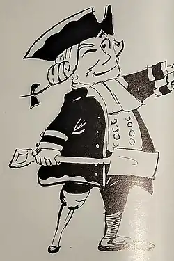 Traditionally, the school's mascot was a Dutchman, although depictions of said Dutchman varied.[14]: 40 Pogo cartoonist Walt Kelly, a Collegiate parent, drew the generally-used version of the mascot in the 1960s.[14]: 38 Kelly's version was generally interpreted as a caricature of Peter Stuyvesant, and often called "Peg Leg Pete" by students.[43] In the 21st century, the mascot's association with Stuyvesant became a subject of controversy because of Stuyvesant's lack of religious tolerance, his vision for New Amsterdam as a slave depot, and his anti-Semitism.[45][46]: 39