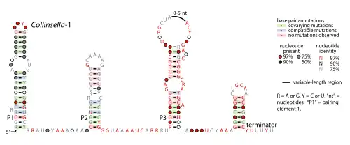 ![]() Consensus secondary structure of Collinsella-1 RNAs | |