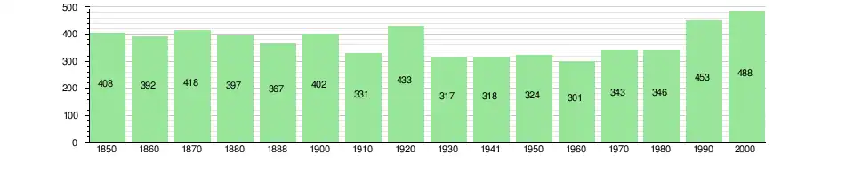 Collonges has a population (as of December 2020) of 832.[6] As of 2008, 10.5% of the population are resident foreign nationals.[7] Over the last 10 years (2000–2010 ) the population has changed at a rate of 6.5%. It has changed at a rate of 5.5% due to migration and at a rate of 2% due to births and deaths.[8]