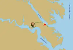 In the first murders, of Dowski and Thomas, a piece of nautical line had been found in Thomas's hair. The killer attempted to use diesel fuel to set fire to the victims' vehicle, suggesting the perpetrators purchased fuel at a gas station for use in a boat rather than purchasing it directly from a marina – a practice common to local fishermen. The sharpness of the knife, which nearly decapitated Thomas, also suggested a fisherman.[34] Knobling and Edwards were found on the banks of the James River. In the Hailey-Call case, police dogs traced a scent from the car to the nearby edge of the York river, suggesting the involvement of a boat.[35]