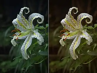 The color balance operations in popular image editing applications usually operate directly on the red, green, and blue channel pixel values,[1][2] without respect to any color sensing or reproduction model. In film photography, color balance is typically achieved by using color correction filters over the lights or on the camera lens.[3]