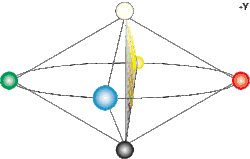 The vertical axis of the color sphere, then, is gray all along its length, varying from black at the bottom to white at the top. All pure (saturated) hues are located on the surface of the sphere, varying from light to dark down the color sphere. All impure (unsaturated hues, created by mixing contrasting colors) comprise the sphere's interior, likewise varying in brightness from top to bottom.