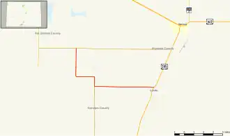 ![]() Map of southern Colorado with SH 368 highlighted in red | ||||