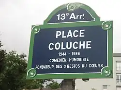 - ^ Doutriaux, Géraldine (29 October 2006). "Une place Coluche inaugurée". Le Parisien (in French). Retrieved 26 June 2025.