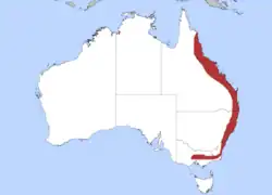 The pigeon's habitat is from Cooktown, Queensland to southern New South Wales, with increasing numbers now found in eastern Victoria. It can commonly be found in tropical regions, subtropical rainforest, scrub, watercourses and street trees. Since colonisation of Australia, their numbers have decreased but they have thrived on the introduced Camphor laurel (Cinnamomum camphora).