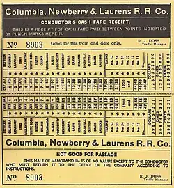- ^ "Columbia, Newberry and Laurens Railroad". Official Guide of the Railways. 87 (7). National Railway Publication Company. December 1954.