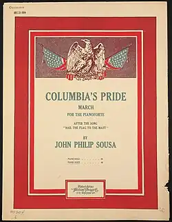 "Columbia's Pride" is a patriotic American march composed by John Philip Sousa in 1914, based on his 1890 song, "Nail the Flag to the Mast."[1] "Columbia's Pride" was published in 1914 by Theodore Presser Co. in Philadelphia as a score for piano.[2]