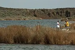 The Columbia Plateau ecoregion is a Level III ecoregion designated by the United States Environmental Protection Agency (EPA) encompassing approximately 32,100 square miles (83,139 km2)[1] of land within the U.S. states of Washington, Oregon, and Idaho. The ecoregion extends across a wide swath of the Columbia River Basin from The Dalles, Oregon to Lewiston, Idaho to Okanogan, Washington near the Canada–U.S. border. It includes nearly 500 miles (800 km) of the Columbia River, as well as the lower reaches of major tributaries such as the Snake and Yakima rivers and the associated drainage basins. It is named for the Columbia Plateau, a flood basalt plateau formed by the Columbia River Basalt Group during the late Miocene and early Pliocene. The arid sagebrush steppe and grasslands of the region are flanked by moister, predominantly forested, mountainous ecoregions on all sides. The underlying basalt is up to 2 miles (3 km) thick and partially covered by thick loess deposits.[2] Where precipitation amounts are sufficient, the deep loess soils have been extensively cultivated for wheat. Water from the Columbia River is subject to resource allocation debates involving fisheries, navigation, hydropower, recreation, and irrigation, and the Columbia Basin Project has dramatically converted much of the region to agricultural use.[2][3][4]