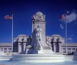 Columbus Fountain, also known as the Columbus Memorial, is a public artwork by American sculptor Lorado Taft, located at Union Station in Washington, D.C., United States. A centerpiece of Columbus Circle, Columbus Fountain serves as a tribute to the Italian explorer Christopher Columbus.[2] The unveiling in 1912 was celebrated all over Washington, DC over the course of three days with parades, concerts and fireworks gathering tens of thousands of people from all over the world.