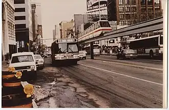 Similarly, in 1933, a decision was made to gradually convert the entire streetcar system to trolley buses (trackless trams).[14] Slowed by the effects of the Great Depression and World War II, the process took 15 years to compete. The Columbus Railway, Power & Light Company was renamed to the Columbus and Southern Ohio Electric Company in 1937.[7] On September 5, 1948, the last two fixed rail trams ran along Neil Avenue and Main Street. The electric company handed over its transit operations to the Columbus Transit Company in November 1949.[7] A lack of investment in maintenance of the tracks, as well as the age of the automobile had slowly brought the demise of the system. The buses were larger, more comfortable and powerful, and soon had air conditioning. The trolley buses did not last long either, being gradually replaced by diesel buses as well. The last trolley bus ran on May 30, 1965.[15] That last ride traversed the Main, Oak, and High Street lines, a 5.5-hour ride that culminated in a ceremony for pulling down a trolley pole and de-energizing the streetcar lines.[7]