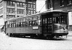 In 1888, the first electric powered streetcar ran on Chittenden Avenue from High Street to the State Fairgrounds.[6] However, it was not successful initially. The first line with successful electrification was the Glenwood & Green Lawn Street Railroad (with trackage mainly along West Broad Street), which was completed in August 1890.[6] The High Street, Long Street, and Mount Vernon Avenue lines were electrified in the following year. The advantages in speed and cleanliness quickly made equestrian power obsolete, and the last horse drawn car ran in 1892, when service fully transitioned to electric streetcars.[7] Also in that year, yet another naming change came with the sale of the Columbus Consolidated Street Railroad Company to the newly formed "Columbus Street Railway Company" for $3,000,000. At this time, the Glenwood & Green Lawn line was acquired. In 1895, the Columbus Railway, Power and Light Company purchased an amusement park that would be known as Olentangy Park. It was located on the southern end of Clintonville. The idea behind the purchase was to increase ridership on the line during non-peak hours by providing an attractive destination at the terminus. Likewise, other transit companies built Indianola Park on North Fourth Street and Minerva Park in the village of the same name.