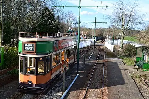 Seaton Tramway runs over part of the former Seaton Branch line between Seaton, Colyford and Colyton. The branch closed in 1966, and tram services from Riverside commenced in August 1970, reaching Colyford in April 1971. Journey times from Colyford station are 15 minutes to Seaton and 10 minutes to Colyton. The Tramway operates a daily service from Easter to the end of October and a more limited service outside of this period.