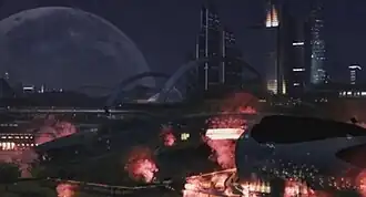 The music video for the song, directed by Dee Shin, was uploaded to 2NE1's YouTube channel on March 2, 2014.[43][44] Yang Hyun-suk described the music video as "set in a near-future city", with the concept revolving around the notion that people in the said era prefer the virtual world over the real one, similar to the movie The Matrix (1999). With the increasing focus and reliance of technology, the theme of the music video attempts to convey the "importance and humanity of reality". In addition, Yang commented that, "Up to now, 2NE1 has filmed a lot of music videos mainly showcasing the song's choreography, but this time I wanted to try new things."[45] In the computer generated graphics-heavy visual, the group is seen living in a futuristic world where one can escape reality and enter a "virtual paradise" with a special machine.[12] The dystopian-like real world features a normal girl (played by Dara) whose boyfriend is addicted to the virtual paradise and would rather be in the fantasy environment than with her. As a result, all four members go from their real world and transform into warrior rebels to infiltrate the virtual environment in order to destroy it from the inside. Filled with elaborate sets, special effects, and unique wardrobes, the video garnered notability for its high production value of half a million dollars to effectively exude a futuristic atmosphere, and has been compared to the likes of science fiction movies.[7][10][45]