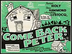 Come Back Peter is a 1952 second feature[2] British comedy film directed by Charles Saunders and starring Patrick Holt, Peter Hammond and Humphrey Lestocq.[3] It was written by Saunders based on the play Come Back Peter by A. P. Dearsley. It was an independent picture by Charles Reynolds Productions.