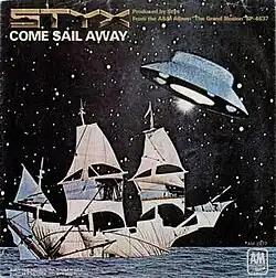 "Come Sail Away" is a song by American rock group Styx, written and sung by singer and songwriter Dennis DeYoung and featured on the band's seventh album The Grand Illusion (1977). Upon its release as the lead single from the album, "Come Sail Away" peaked at #8 in January 1978 on the Billboard Hot 100, and helped The Grand Illusion achieve multi-platinum sales in 1978. It is one of the biggest hits of Styx's career.