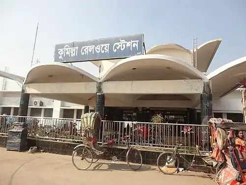 Cumilla Railway Station is a primary railway station of the Eastern railway located in the town of Comilla.[1] Every day trains from Dhaka, Chittagong, Sylhet, Mymensingh, Brahmanbaria, Chandpur and other districts run through this station. The railway station of Comilla established in 1895. In the same year, a railway line was constructed from this place to Chittagong with a length of 149.89 km.[2] All trains entering Chittagong stop at Comilla Railway Station.[3]