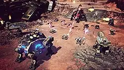 There are two playable factions: the Global Defense Initiative (GDI) and the Brotherhood of Nod. The storyline begins with the world being consumed by the rampant growth of Tiberium, which is threatening to render the earth uninhabitable. Each faction is split into three upgradeable classes: offense, defense and support, each with their own specialized focus. The classes consist mostly of their own unique units, with the only shared unit among classes being the engineer. The offense class is focused on tank-based, front-line combat, relying less on any kind of fortified emplacements or bases. The defense class is focused on infantry-based combat as well as utilization of rudimentary base defenses, and are also the only class to have access to superweapons. It is the only class that allows the player to construct buildings in order to develop their base (analogous with the previous games). The support class is focused on air combat and specialized vehicles to traverse the environment, and is also equipped with special support powers that are used to assist teammates. As it relies on air support, the support MCVs of both factions are able to lift off in the air.[3] Command & Conquer 4 contains two non-playable factions from previous games in the Tiberium Universe: The Scrin (C&C3) and the Forgotten (Tiberian Sun), the latter returning as a minor part of the story as well as a neutral class on the map.[4] Command & Conquer 4 includes a total of about 90 units, including many new units and updated versions of previous Command & Conquer units.[3]