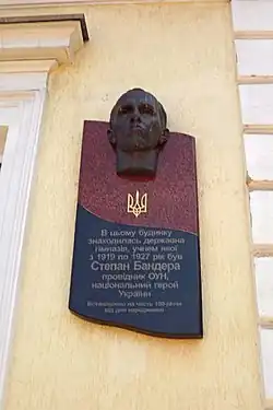 - Stryi. Monument to Stepan Bandera in Stryi is installed near the building of the gymnasium, where he was a student in 1919–1927.[25][3]