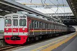 - Two N1000 series EMUs of the Keikyu railway pass each other in Tokyo