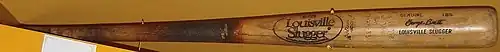 | 2.25–2.625 inches (5.72–6.67 cm) in diameter and no longer than 42 inches (110 cm). Must be made of wood at the professional level; may be made of aluminum in high school and college. | No more than 2.28125 inches (5.7944 cm) in diameter, no longer than 34 inches (86 cm) and no more than 38 ounces (1,100 g) in weight. Most commonly made of composite materials or aluminum, though wooden bats may be used | ||