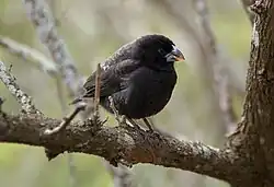 Interference competition occurs directly between individuals via aggression when the individuals interfere with the foraging, survival, and reproduction of others, or by directly preventing their physical establishment in a portion of the habitat. An example of this can be seen between the ant Novomessor cockerelli and red harvester ants, where the former interferes with the ability of the latter to forage by plugging the entrances to their colonies with small rocks.[5] Male bowerbirds, who create elaborate structures called bowers to attract potential mates, may reduce the fitness of their neighbors directly by stealing decorations from their structures.[6]