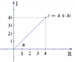 for example: z = 4 + 5i, where x and y are real numbers, and i is the imaginary unit. In this customary notation the complex number z corresponds to the point (x, y) in the Cartesian plane; the point (x, y) can also be represented in polar coordinates with: