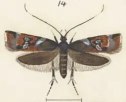 4. ^ Francis Walker (1864), List of the Specimens of Lepidopterous Insects in the Collection of the British Museum, Part XXIX. - Tineites, London: Natural History Museum, London, pp. 657–658, Wikidata Q110191308