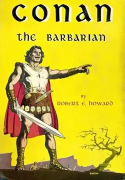 Conan the Barbarian is a collection of five fantasy short stories by American writer Robert E. Howard, featuring his sword and sorcery hero Conan the Barbarian, first published in hardcover by Gnome Press in 1955.[1] The stories originally appeared in the 1930s in the fantasy magazine Weird Tales. This collection never saw publication in paperback; instead, its component stories were divided and distributed among other "Conan" collections. A later collection with the same title but different contents was issued in paperback by Del Rey/Ballantine Books in 2011.[2]