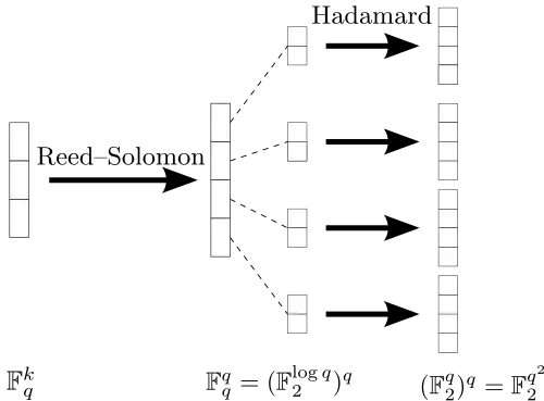 In coding theory, concatenated codes form a class of error-correcting codes that are derived by combining an inner code and an outer code. They were conceived in 1966 by Dave Forney as a solution to the problem of finding a code that has both exponentially decreasing error probability with increasing block length and polynomial-time decoding complexity.[1] Concatenated codes became widely used in space communications in the 1970s.