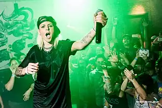 Concert photography is the photography of activities relating to concerts and music. It encompasses photographs of a band or musician as well as coverage of a concert. It is a minor commercial endeavor that supports in part of the efforts for many independent photographers. The photographer will be able to travel around different venues.[1] While doing concert photography you would have to have knowledge about photoshop.[2]