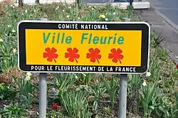 The Concours des villes et villages fleuris (French pronunciation: [kɔ̃kuʁ de vil e vilaʒ flœʁi], 'Competition of cities and villages in bloom') is an annual French contest. It aims to encourage communes to adopt and implement policies improving the quality of life of their inhabitants and enhancing their attractiveness to visitors through the provision and maintenance of green spaces and the enhancement of their natural environments. Successful communes are awarded the right to display a badge (one to four flowers) on road signs and in other local promotional material.