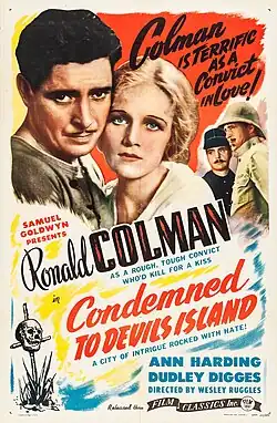 Condemned is a 1929 American pre-Code melodrama, directed by Wesley Ruggles, and starring Ronald Colman, Ann Harding, Dudley Digges, Louis Wolheim, William Elmer, and Wilhelm von Brincken. The movie was adapted by Sidney Howard from the novel by Blair Niles.