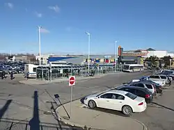 Conestoga station is located beside the King Street entrance on the westerly side of Conestoga Mall in Waterloo, Ontario.[1] This facility operates as a major transit terminal for Grand River Transit (GRT) buses, with all of the routes that it serves terminating here.[2] Perth County Connect buses, serving Stratford, Perth County and London, also serve the station via a stop on King Street.[3]