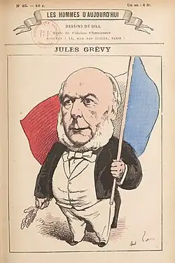 In 1846 there were 221 members. 44 had left the society, so a total of 265 had been or were part of it. Of 230 who gave their professions, 138 were advocates or magistrates, 30 in the Council of State, 16 in public office and 11 diplomats.[19] Of the 265 members up to 1846, 59 became deputies. 30 served under one regime, 18 under two regimes and 9 under 3 regimes. Werner de Merode and Charles-Pierre-Paul Paulmier were deputies under four regimes: the July Monarchy, French Second Republic, Second French Empire and French Third Republic. Eight became ministers: Louis Buffet, Charles de Morny, Lionel de Moustier, Auguste de Talhouët-Royt and Adolphe Vuitry under the Second Empire, Louis Decazes, Eugène de Goulard and Pierre Edmond Teisserenc de Bort under the Third Republic. Jules Grévy was elected president of the Republic in 1879.[20]