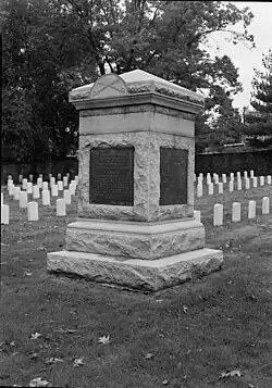 The monument to Confederate Colonel Francis S. Bartow was erected after First Manassas but was destroyed before or during Second Manassas. The other early monuments were Union monuments at Battle of Rowlett's Station in Munfordville, Kentucky in January 1862 for the men of the 32nd Indiana killed. It was removed for its own protection from the elements in 2008.[35] Other early Union monuments before the war ended were the Hazen Brigade Monument in Murfreesboro and the 1865 Ladd and Whitney Monument in Lowell, Massachusetts.[36][37][38]